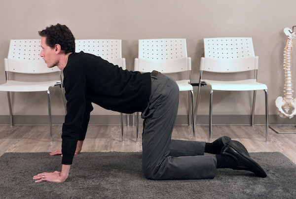 For a safe general lower back mobilization exercise, consider beginning slowly with a cat camel stretch/mobilization. Begin slowly, and don’t force any of the movements. For a detailed description and video, please refer to the exercise tab of our website, under lowback: