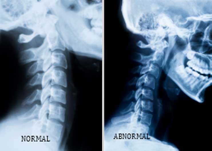 As the neck shifts forward, the natural curve of the neck, termed a lordosis, is lost. The neck either straightens, or in the worst case, adopts a reversed curve, termed a kyphotic curve.