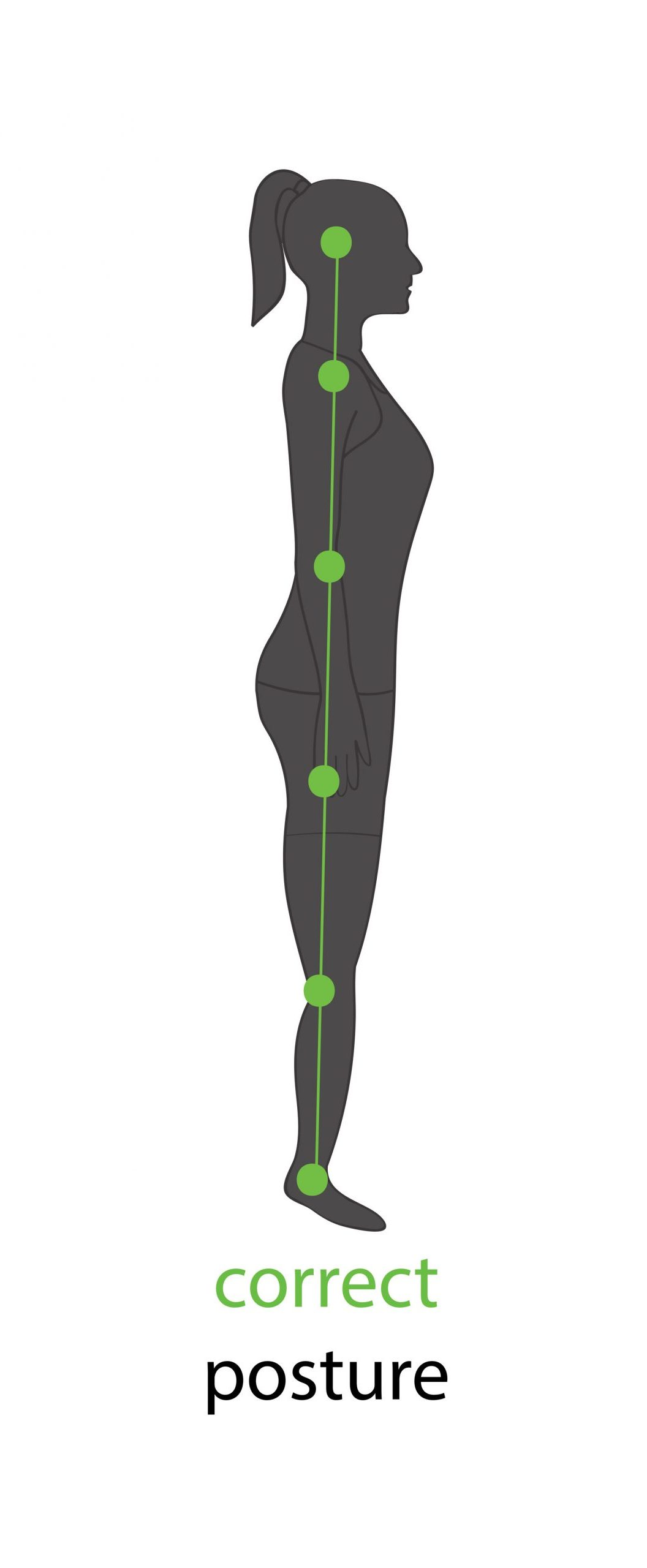 Correct posture should maintain these natural spinal curves with minimal effort, so that all your bones and joints are properly aligned, with minimal overall strain, and no pain.